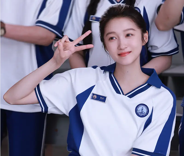 關(guān)曉彤穿藍白色校服開心比耶!秒變高中清純?;ǔB(yǎng)眼