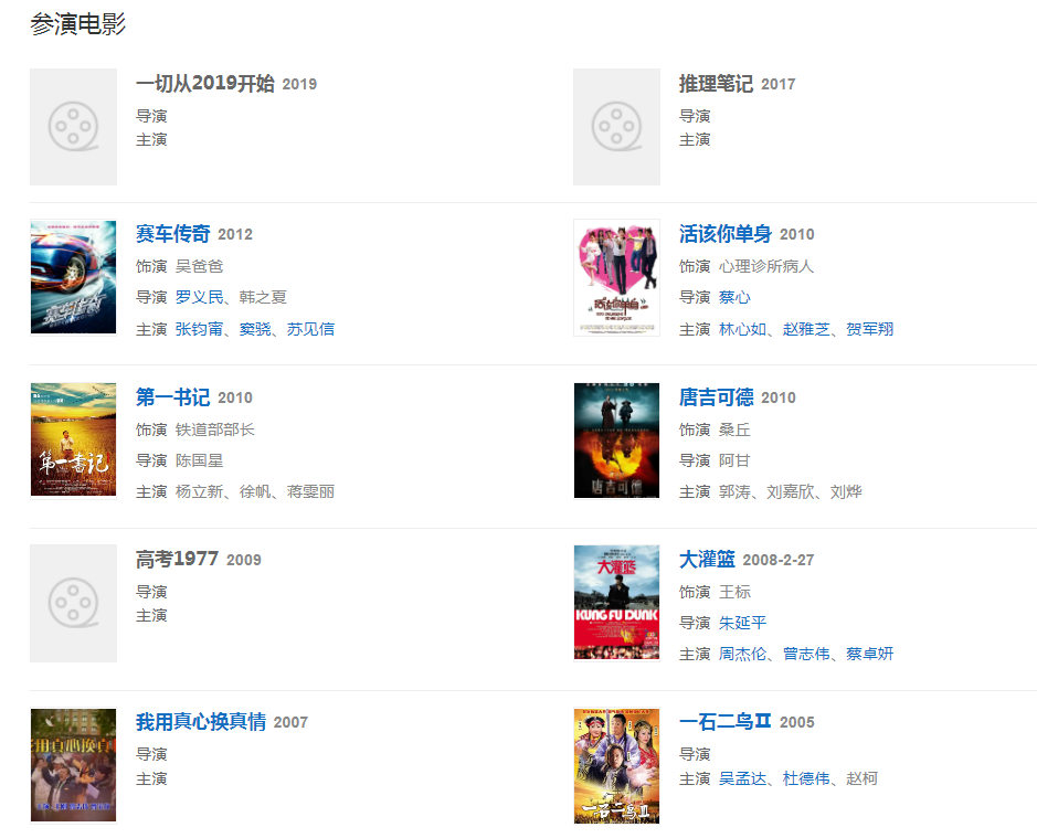 代表作品:夜幕下的哈爾濱、家宴、鐵齒銅牙紀曉嵐、江山風雨情、夢斷紫禁城、鐵將軍阿貴、宰相劉羅鍋