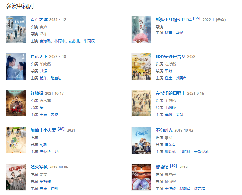 2021年8月6日,參演的熱血青春勵志劇《烈火軍校》播出,在劇中飾演安雯;9月15日,搭檔曹駿主演的當代農(nóng)村劇《在希望的田野上》在騰訊視頻播出,在劇中飾演卞筱悅;10月17日,主演的大型史詩電視劇《紅旗渠》播出,在劇中飾演鐵姑娘隊隊長石水蓮。