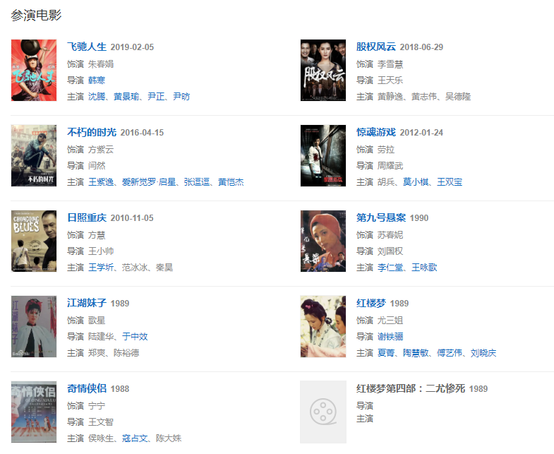 代表作品:粉紅色的回憶、天竺少女、美人吟、牧野情歌、西游記、飛馳人生、大媽的世界