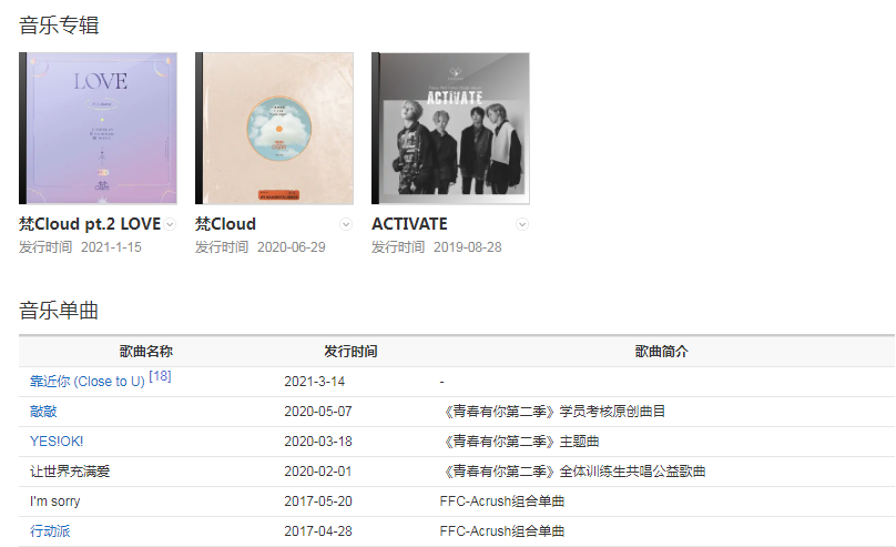 代表作品:行動派、ACTIVATE、梵Cloud、青春有你第二季