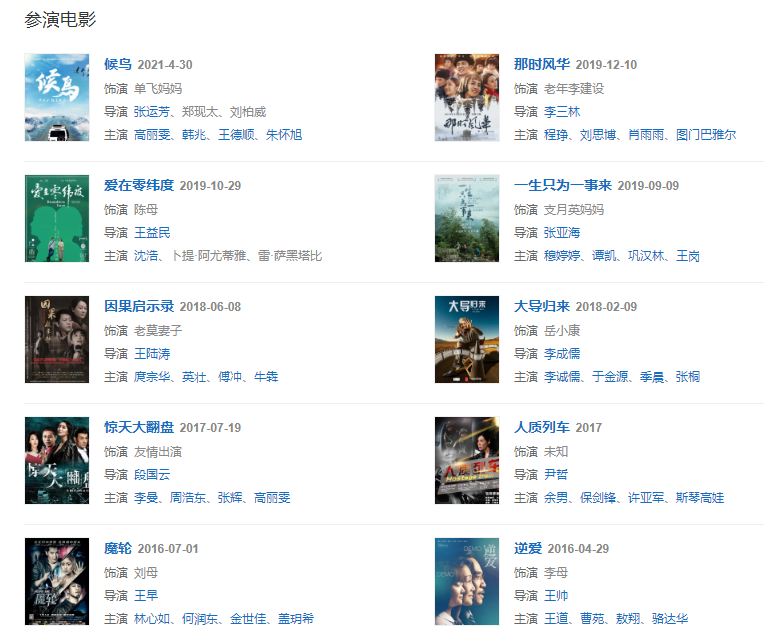 2013年友情客串動(dòng)作懸疑電影 《奪樽》 。2018年2月參加春晚節(jié)目的錄制 。