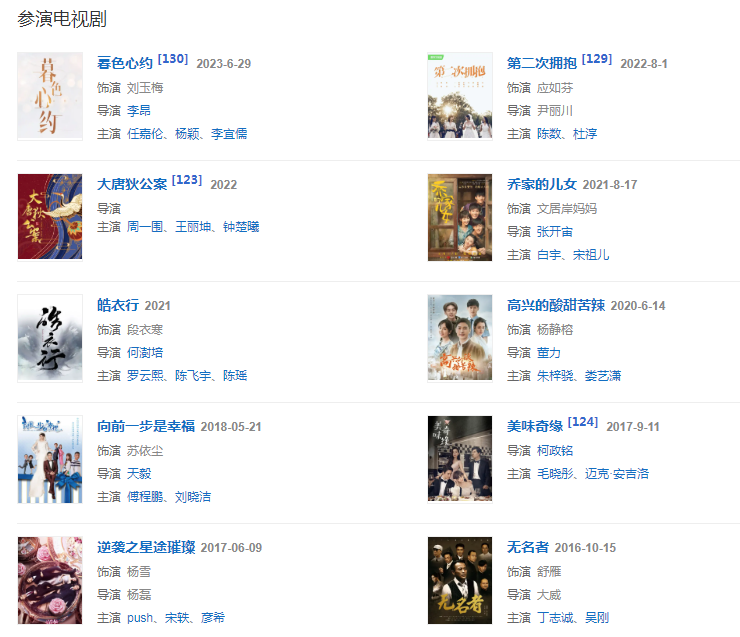 代表作品:一百萬、非你不可、蝴蝶飛飛、人間正道是滄桑、幸福里九號、小魚兒與花無缺