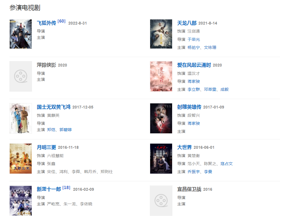 2023年1月4日,參演的《天龍八部之喬峰傳》發(fā)布“英雄”版預告,影片預計今年上線視頻平臺。